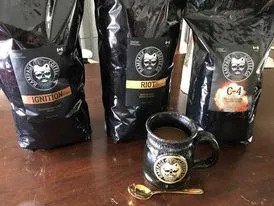 In our C - 4 blend you will find premium South American and South Asian coffee beans specifically blended in a way that will punch you out of your morning slippers. Be careful with this blend as it is our highest caffeine blend and it has been known to start out of control RAMPAGES!